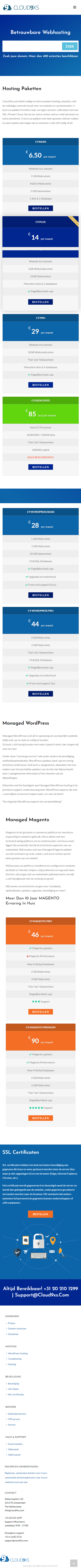 Cloud9xs.com biedt veilige en betrouwbare hosting, waarbij u zelf de volledige controle houdt over uw website en uw bestanden. U kunt uw pakket inrichten naar uw eigen wensen: uitbreiden met een SSL, Private Cloud, ftp server, extra ruimte, extra e-mail adressen en extra domeinen. U kunt uw pakket mee laten groeien, kleiner maken en extra opties…