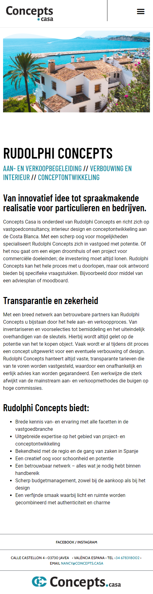 Concepts Casa is onderdeel van Rudolphi Concepts en richt zich op vastgoedconsultancy, interieur design en conceptontwikkeling aan de Costa Blanca. Met een scherp oog voor mogelijkheden specialiseert Rudolphi Concepts zich in vastgoed met potentie. Of het nou gaat om een eigen droomhuis of een project voor commerciële doeleinden; de investering moet altijd lonen. Rudolphi Concepts…